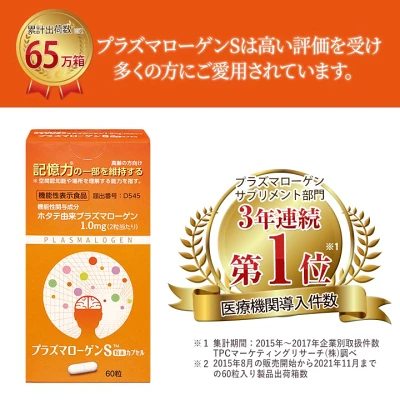 プラズマローゲンS サプリ 粉末カプセル 機能性表示食品 30日分 60粒 Plasmalogen ホタテ ハードカプセル 高純度 日本製 国産